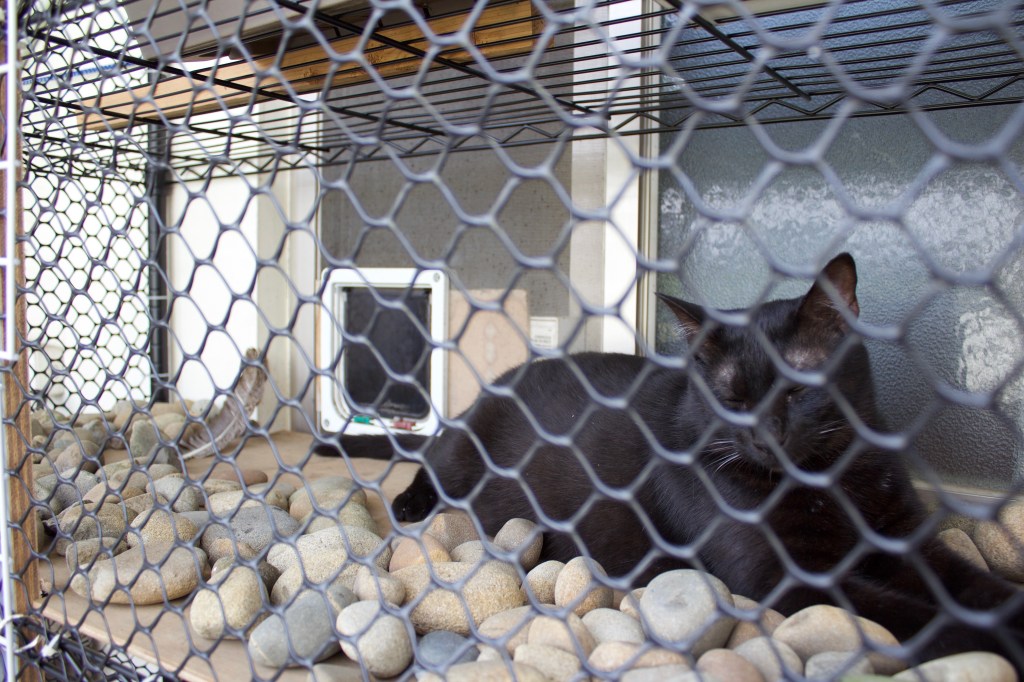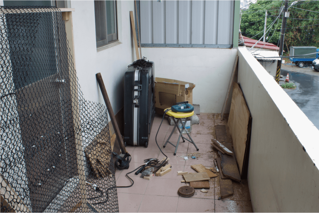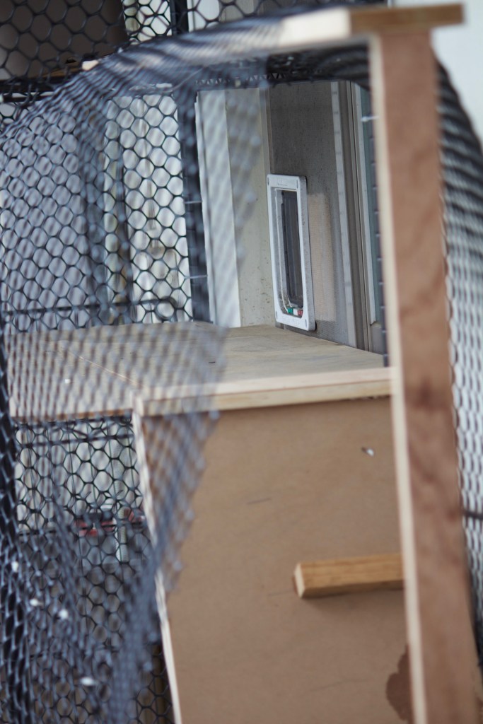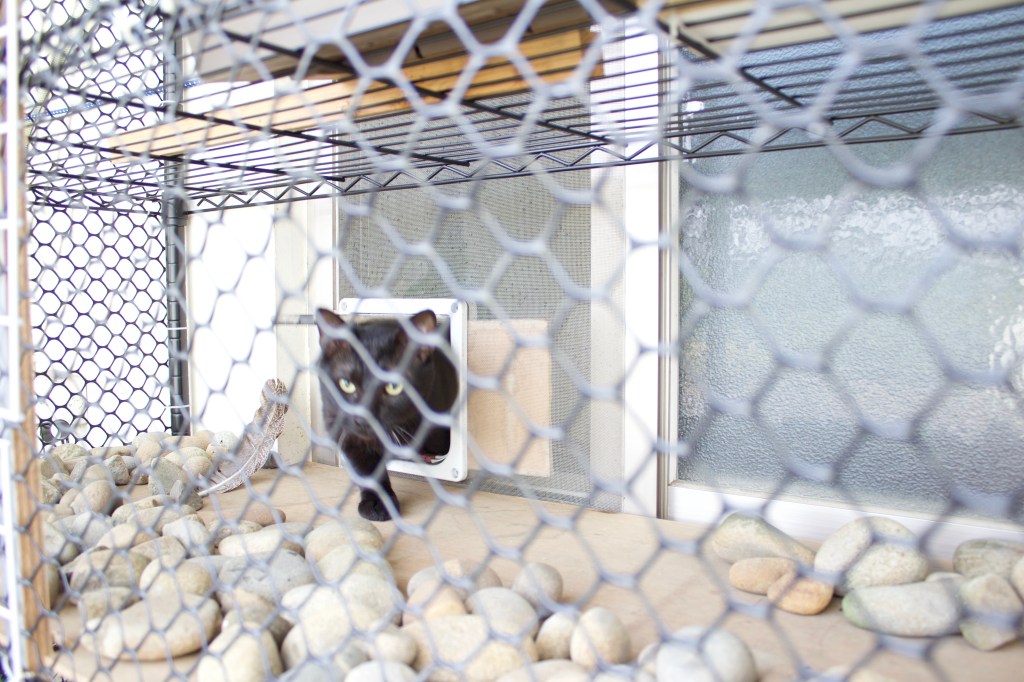 我們想了很久,最後決定把貓砂放在陽台,然後訓練貓兒子從窗戶上的「貓門」走去陽台。