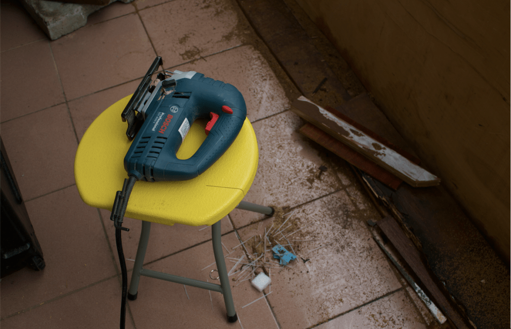 這是一張只能放在倉庫的桌子,從4隻桌腳到桌面的4邊,沒有一條直線,做木工還是需要學習的。