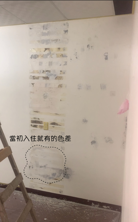本來以為只是小小一片,剷下去才發現不小片了! 除了有壁癌,還有殘膠要處理,剷到手都麻了!