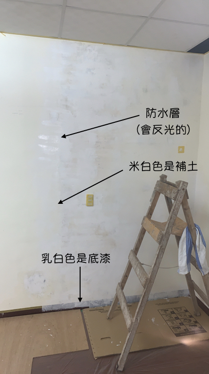 上圖中還可以看到防水層跟補土,拍完照還要全部上一層底漆,然後才能上面漆